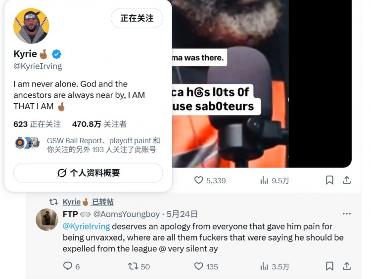 他寫(xiě)道:“所有因歐文沒(méi)打疫苗而讓他痛苦的人,歐文應該得到你們的道歉。那些說(shuō)他應該被逐出聯(lián)盟的XX都去哪了?怎么沉默了?”