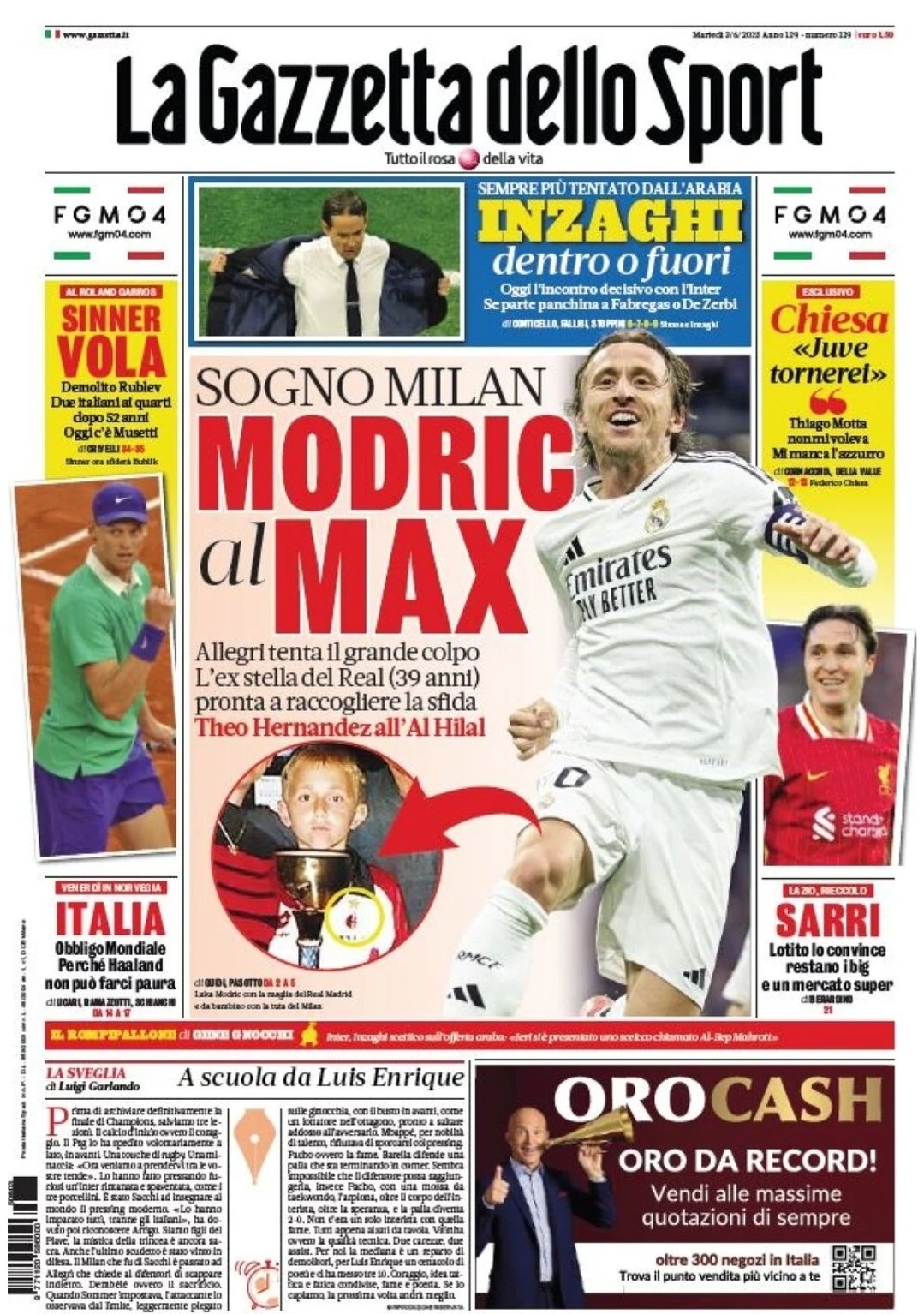 06月03日訊 據知名記者羅馬諾報道,《米蘭體育報》在報刊的頭版上寫(xiě)著(zhù)基耶薩在采訪(fǎng)中談到老東家尤文。
