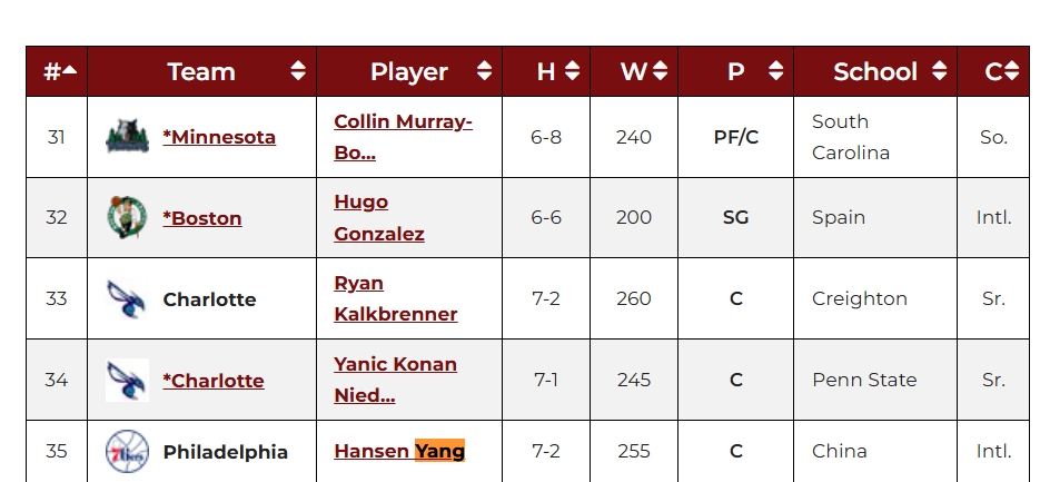 鏈接>>>較上一期提升4名??老牌選秀網(wǎng)站更新:楊瀚森40順位被奇才選中