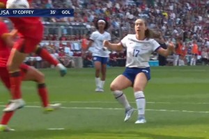 第53分鐘,美國女足擴大比分!米歇爾右路下底傳到門(mén)前霍蘭頭球破門(mén),美國女足3-0中國女足?!?/strong>