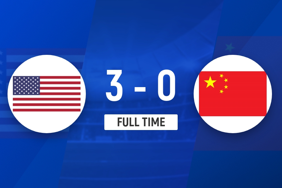 下半場(chǎng)補時(shí)3分鐘,美國女足3-0中國女足。