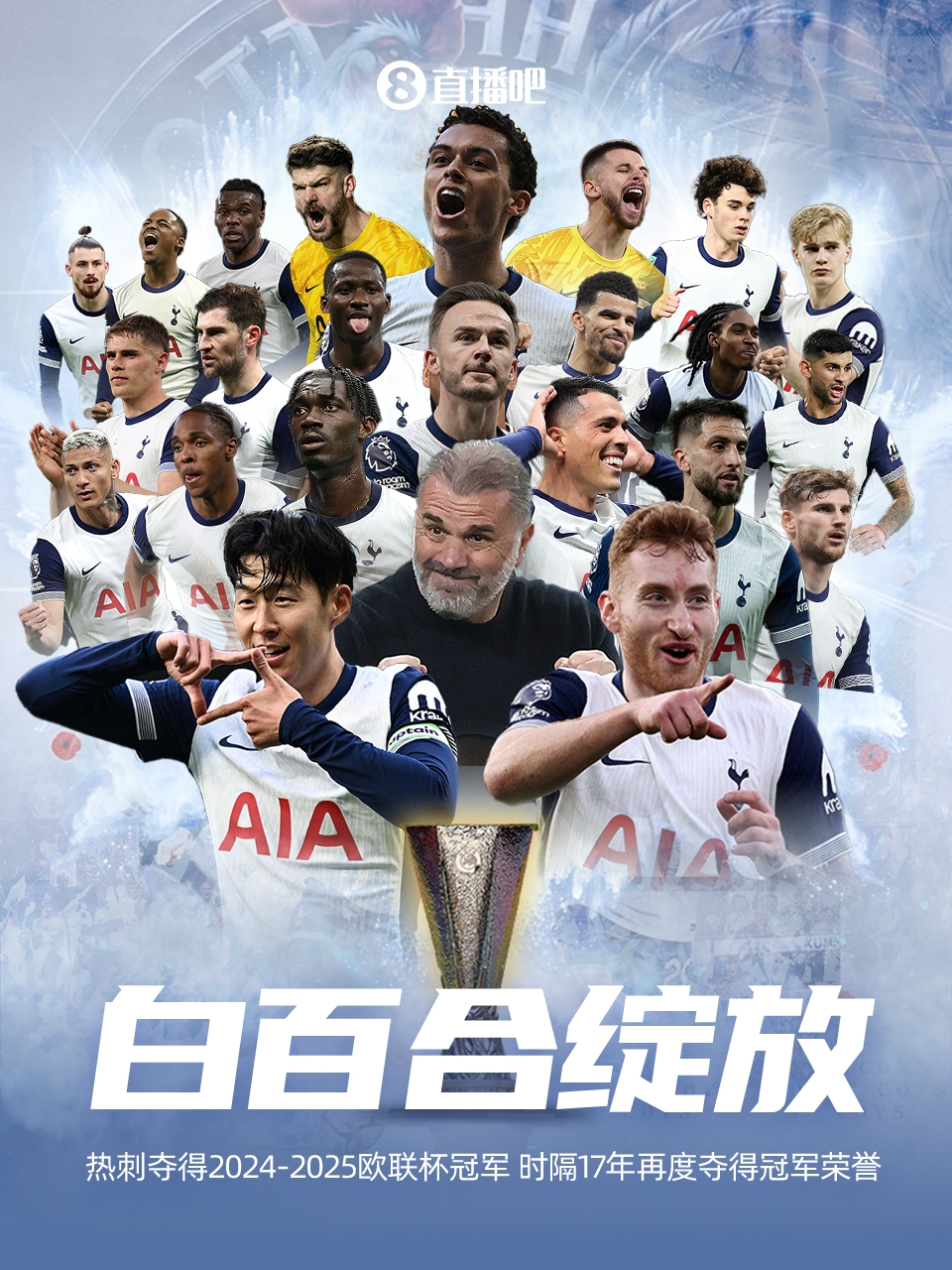 24/25賽季歐聯(lián)杯,熱刺決賽1-0戰勝曼聯(lián),時(shí)隔17年再次獲得冠軍。