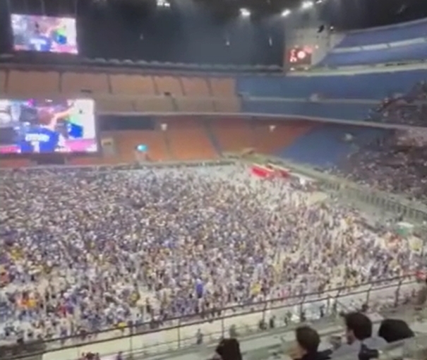 06月01日訊 歐冠決賽,國米0-5慘敗巴黎。米體曬出視頻,國米0-4巴黎后,在梅阿查觀(guān)看歐冠決賽的球迷早早退場(chǎng)。