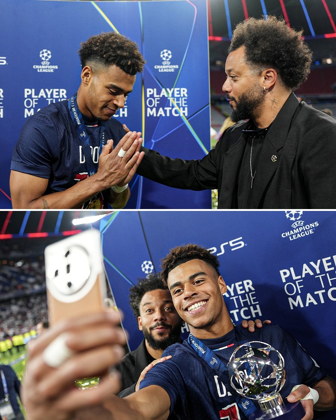 謙遜有實(shí)力!馬塞洛為杜埃頒發(fā)決賽MVP獎杯,后者向前輩彎腰致意