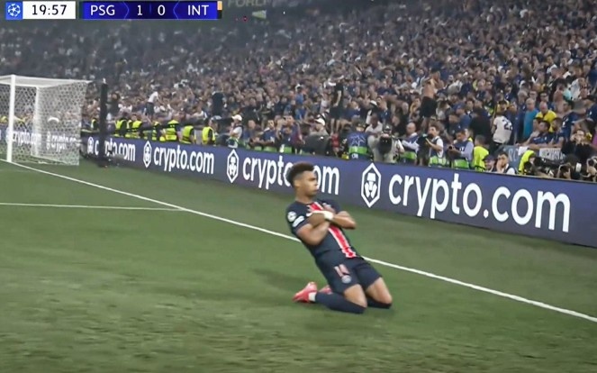 6月1日訊 歐冠決賽,巴黎暫時(shí)2-0領(lǐng)先國米。杜埃破門(mén)后模仿姆巴佩的慶祝方式,目前巴黎奪冠形勢大好。