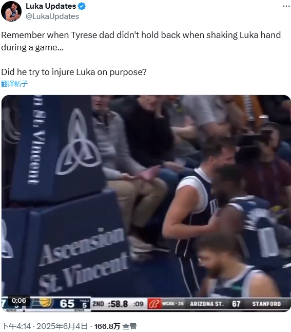 盧卡-東契奇自媒體在社交媒體上發(fā)布了一則視頻(如下),并配文:“還記得比賽中哈利伯頓的父親與東契奇握手時(shí)毫不收力的場(chǎng)景嗎?他是否存在故意傷害盧卡的嫌疑?”