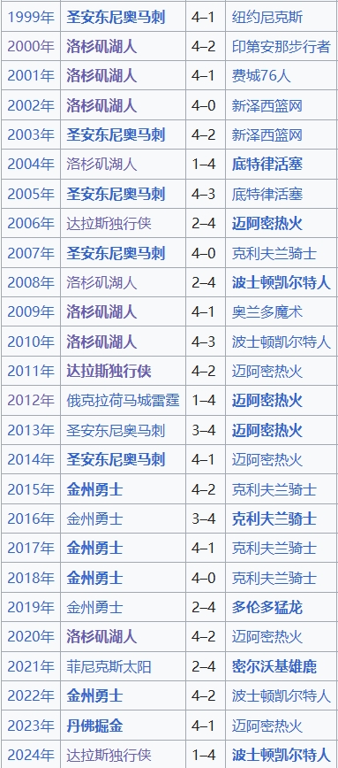 據數據統計,自1998年公牛王朝終結以來(lái),每一屆的東部冠軍僅有五次在總決賽中擁有主場(chǎng)優(yōu)勢,分別是: