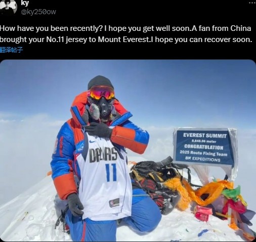 這位球迷在社媒多次聯(lián)系了歐文,他寫(xiě)道:“歐文,你能看到我的新聞嗎?一位中國球迷把你的11號球衣帶到了珠穆朗瑪峰,我是你忠實(shí)的粉絲。希望你早日康復。我希望得到你的回復!”