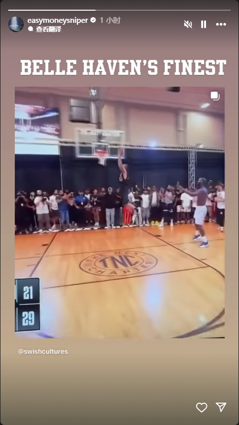 杜蘭特轉發(fā)了二人單挑的集錦并配文寫(xiě)道:“BELLE HAVEN的驕傲”。
