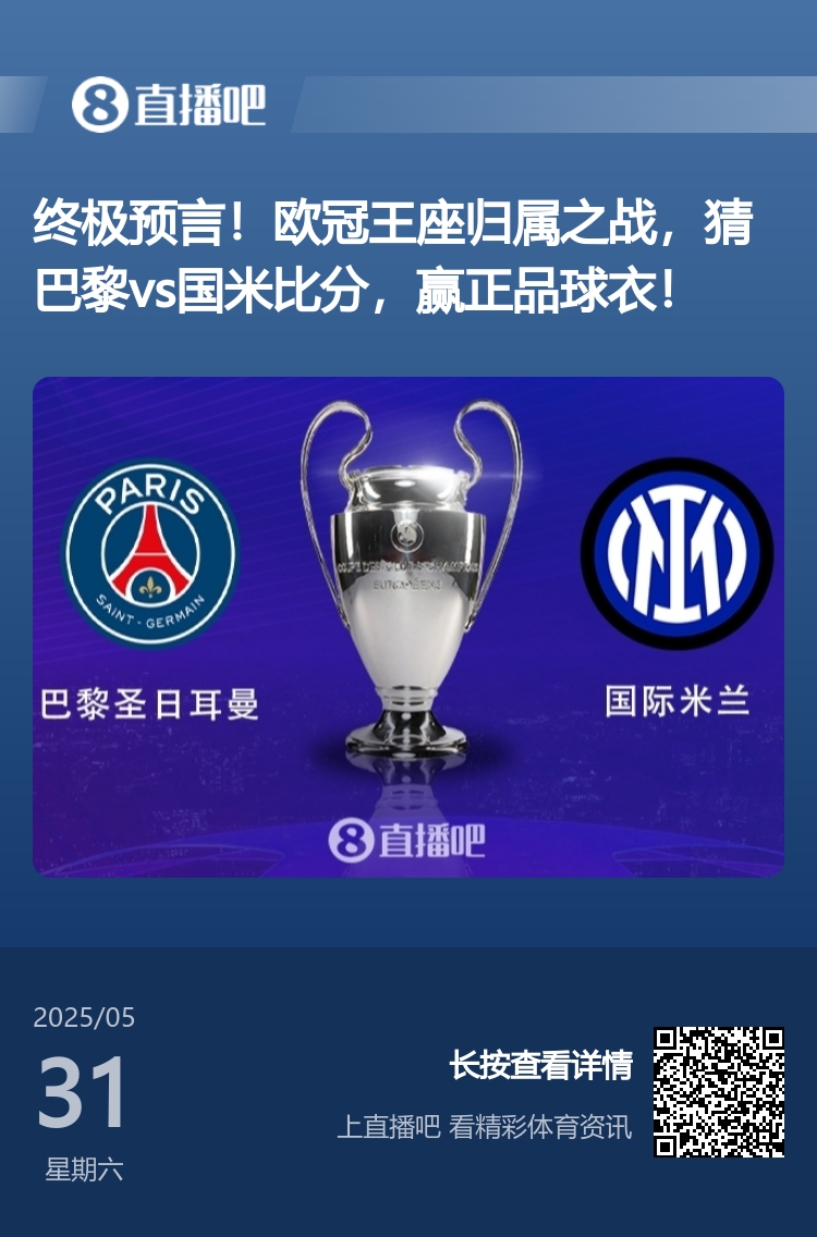 開(kāi)獎啦??超2萬(wàn)名吧友預測歐冠決賽比分,僅6位猜對巴黎5-0國米
