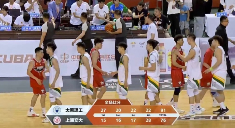 末節太原理工開(kāi)始降節奏控比賽節奏,他們3分鐘里僅丟3分不給對手任何起勢機會(huì )。節中上海交大憑借頓家威的連續拿分破荒,但防守端阻止不了對手導致分差高居不下,曹芷豪得分助攻一把抓幫助太原理工做出應對。末段上海交大雖然瘋狂夾搶縮小至10分附近但為時(shí)已晚。最終,太原理工大學(xué)91-76輕取上海交通大學(xué)拿下八強開(kāi)門(mén)紅。