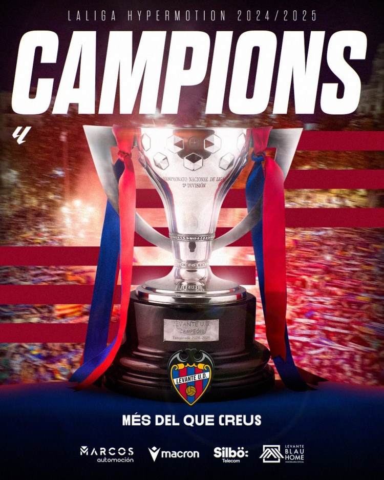 最終,萊萬(wàn)特79分奪冠,埃爾切77分第二,兩隊升入西甲。