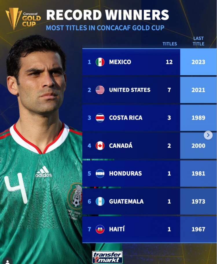 7月7日訊 美國即將迎來(lái)和墨西哥的中北美金杯賽決賽,《轉會(huì )市場(chǎng)》也統計了該項賽事歷史奪冠榜。