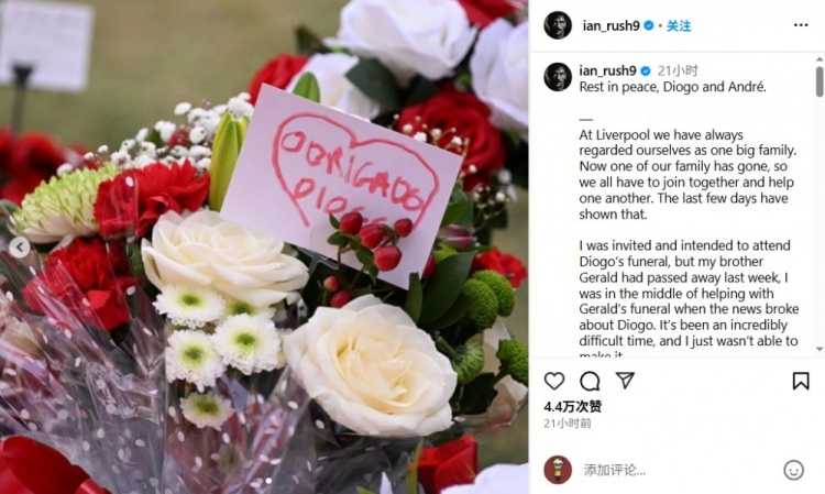 7月7日訊 利物浦名宿伊恩-拉什在Instagram發(fā)文,解釋自己為何缺席了迪奧戈-若塔的葬禮。