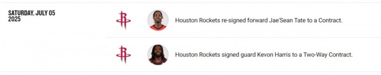 不過(guò),根據NBA官網(wǎng)公布的信息,泰特和火箭的簽約在7月5號已經(jīng)完成,這是在凍結期內。根據NBA的規定,凍結期內只能簽新秀合同、雙向合同和底薪合同,具體到泰特的情況,他與火箭簽下的是一份底薪合同。