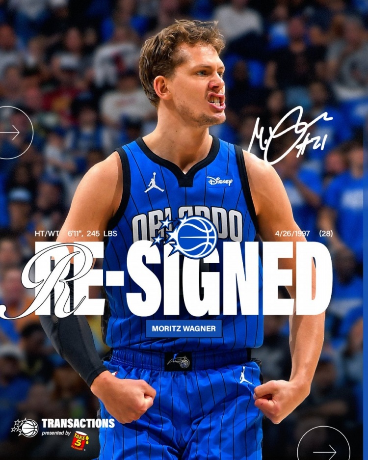 7月8日訊 魔術(shù)隊官方宣布,大瓦格納正式和球隊續約,并曬圖歡迎其回歸。