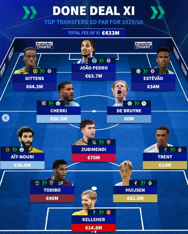 7月8日訊 夏窗剛剛重啟不久,但已經(jīng)完成了很多交易,《轉會(huì )市場(chǎng)》列出了兩套今夏重磅轉會(huì )陣。