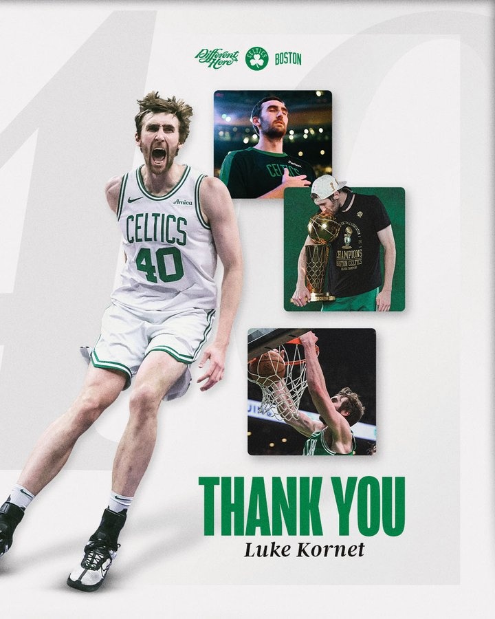 凱爾特人官方曬圖致謝科內特:“永遠的凱爾特人冠軍。盧克,感謝你所做的一切。”
