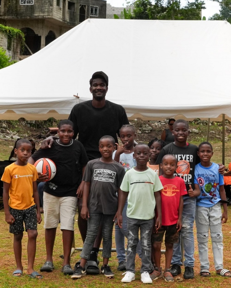 艾頓配文中寫(xiě)道:“回到一切開(kāi)始的地方。我們一起為牙買(mǎi)加圣伊麗莎白的Cedar Spring社區中心重新開(kāi)放了大門(mén) —— 這是艾頓家庭基金會(huì )在這座島上的首次項目活動(dòng)!”