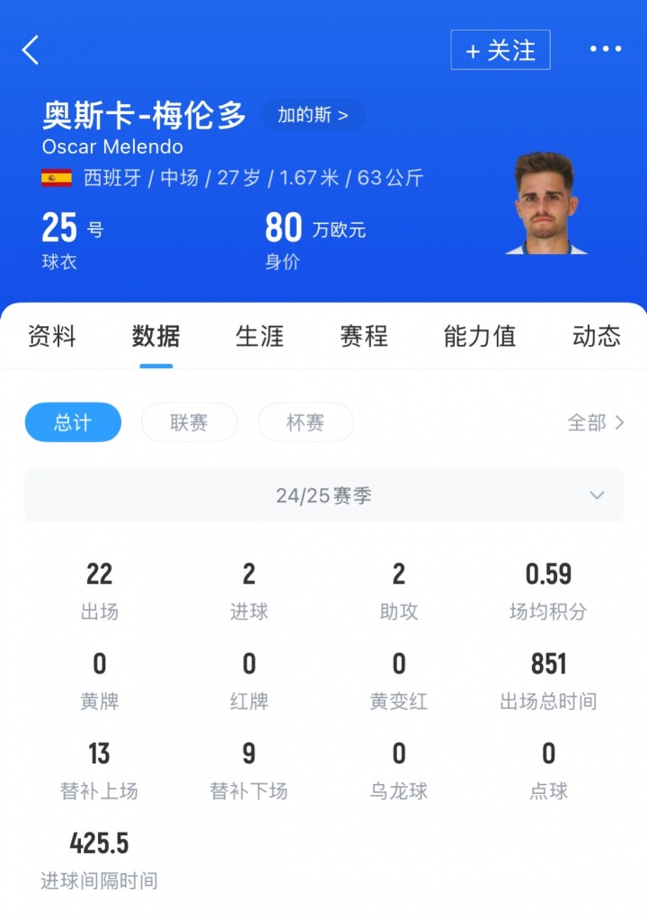 梅倫多曾于2017年-2022年間效力于西班牙人,上賽季他在加迪斯22場(chǎng)2球2助。