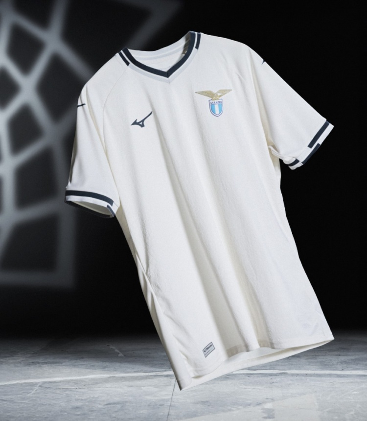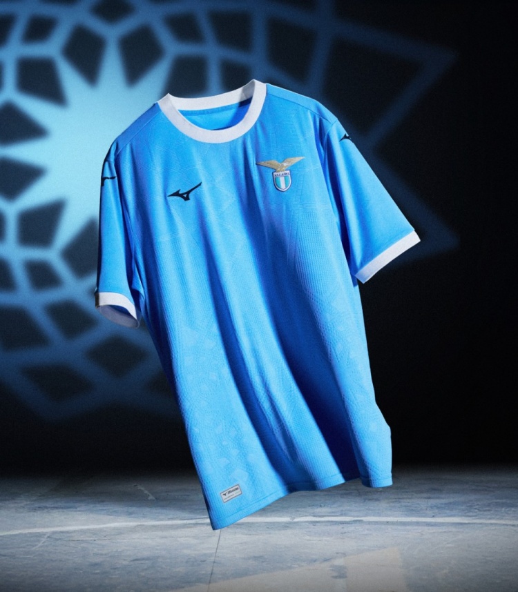 拉齊奧2025-26賽季的球衣由美津濃設計生產(chǎn),主場(chǎng)球衣延續經(jīng)典的天藍色基調,通過(guò)壓花工藝打造的幾何圖案向米開(kāi)朗基羅設計的卡比托利歐廣場(chǎng)地磚藝術(shù)致敬,彰顯拉齊奧俱樂(lè )部的身份標識。立體浮雕隊徽位于左胸心臟位置,右側則是美津濃品牌標志。純白圓領(lǐng)后頸處印有“1900年1月9日”成立日期,搭配同色系羅紋袖口,全套裝備包含白色短褲與飾有天藍色細節的白色球襪。