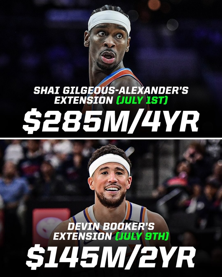 在亞歷山大4年2.87億提前續約雷霆后的第八天,布克2年1.45億美元頂薪提前續約太陽(yáng)。