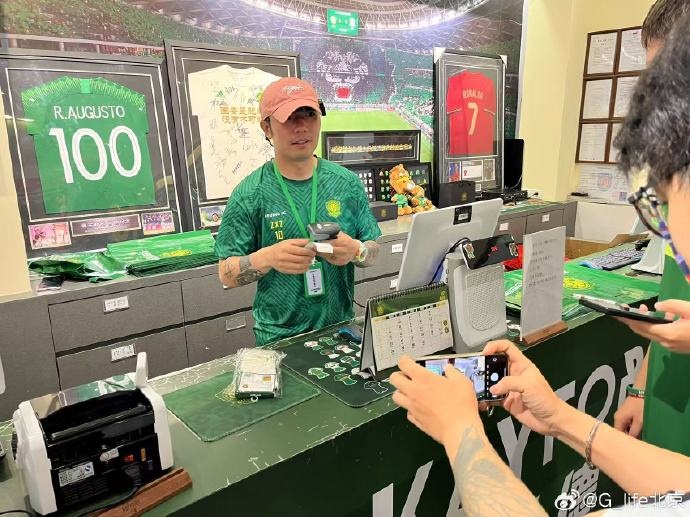 7月10日訊 博主“G_life北京”曬照,國安球員張稀哲在國安商店當收銀員。