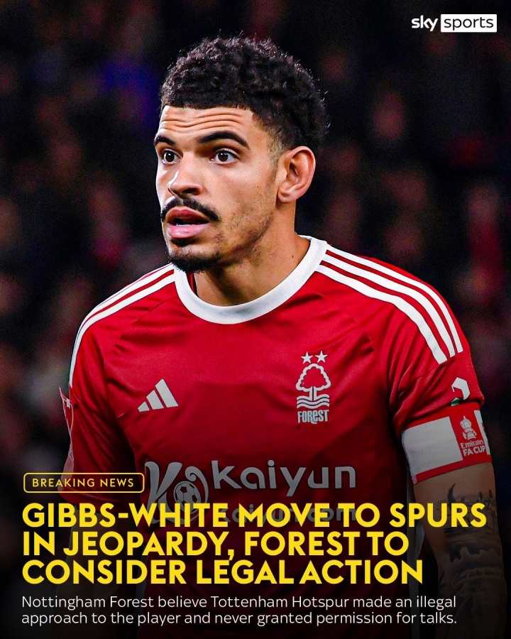 諾丁漢森林認為熱刺非法接觸球員,森林從未允許他們與懷特接觸。森林認為,吉布斯-懷特的解約條款存在保密規定,而熱刺的出價(jià)正是解約金的價(jià)格。