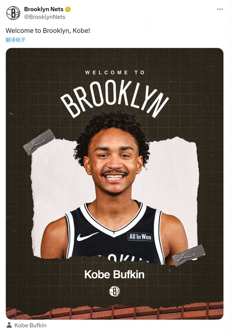 9月17日訊 籃網(wǎng)官宣了科比-巴夫金的加盟,他們配文也非常的俏皮,寫(xiě)的是:“歡迎來(lái)到布魯克林,科比?!?/p>