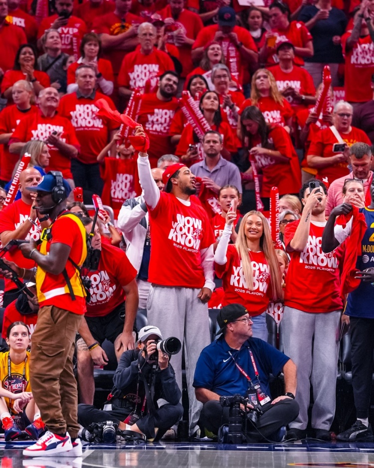 9月17日訊 步行者官方社媒曬出了哈利伯頓和未婚妻在現場(chǎng)觀(guān)看印第安納狂熱隊對陣亞特蘭大夢(mèng)想的季后賽首輪G2比賽。