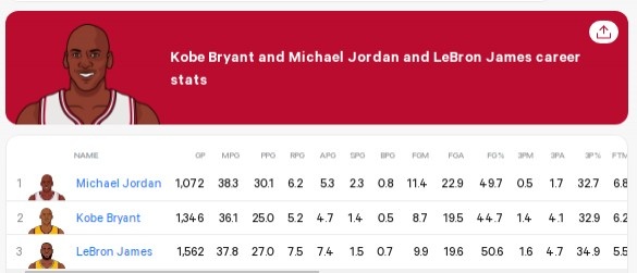 喬丹職業(yè)生涯奪得了6次總冠軍,10次得分王??票嚷殬I(yè)生涯拿到了5次總冠軍,2次得分王。詹姆斯則即將開(kāi)啟生涯的第23個(gè)賽季,他奪得了4次總冠軍,是NBA歷史得分王。
