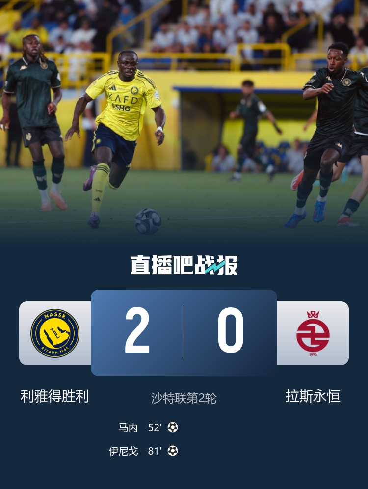 9月15日訊 北京時(shí)間2:00,沙特聯(lián)第2輪利雅得勝利vs拉斯永恒。上半場(chǎng),C羅錯失單刀機會(huì )。下半場(chǎng),馬內破門(mén)幫助利雅得勝利取得領(lǐng)先;科曼錯失空門(mén)良機!伊尼戈頭球破門(mén),隨后又送出一粒點(diǎn)球,納賈爾神勇?lián)潼c(diǎn)。最終,利雅得勝利2-0擊敗拉斯永恒,新賽季開(kāi)局兩連勝。