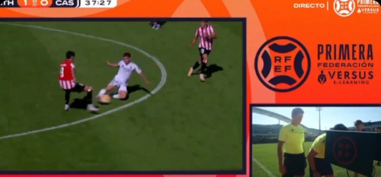阿韋洛亞率領(lǐng)的卡斯蒂亞在對陣畢巴B隊的比賽中也遭遇了類(lèi)似的爭議。比賽第36分鐘,由于塞斯特羅累計兩張黃牌被罰下,卡斯蒂亞不得不以10人應戰。這張紅牌同樣充滿(mǎn)了爭議??ㄋ沟賮喺埱蟛榭碫AR,主裁判大衛-洛佩斯也確實(shí)回看了這一動(dòng)作。然而,皇馬替補席不敢相信眼前發(fā)生的一切,球員本人也搖頭否認,堅稱(chēng)自己只是碰到了球。