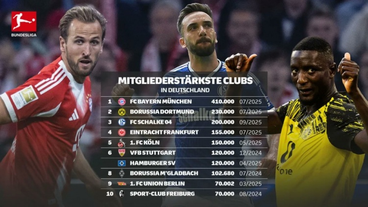 德國俱樂(lè )部注冊會(huì )員數量榜: