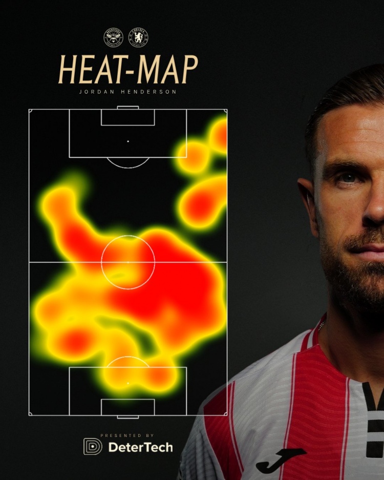 布倫特福德官方社媒曬出亨德森的跑動(dòng)熱點(diǎn)圖,這位老將覆蓋范圍極大,布倫特福德配文:“亨德森無(wú)處不在?!?/p>