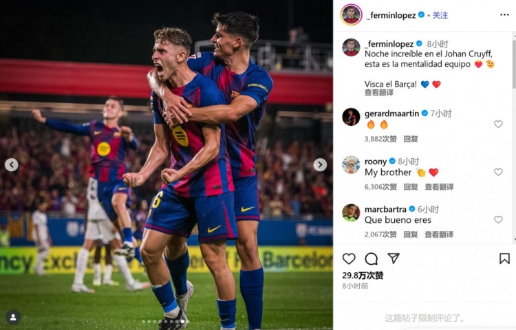 在社交媒體上,費爾明寫(xiě)道:昨晚在約翰-克魯伊夫球場(chǎng),球隊展現出了令人驚嘆的心態(tài)!加油巴薩!