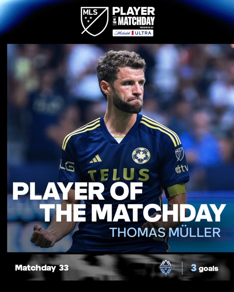美職聯(lián)官方社媒曬出為穆勒制作的海報,宣布他當選本輪比賽最佳球員。