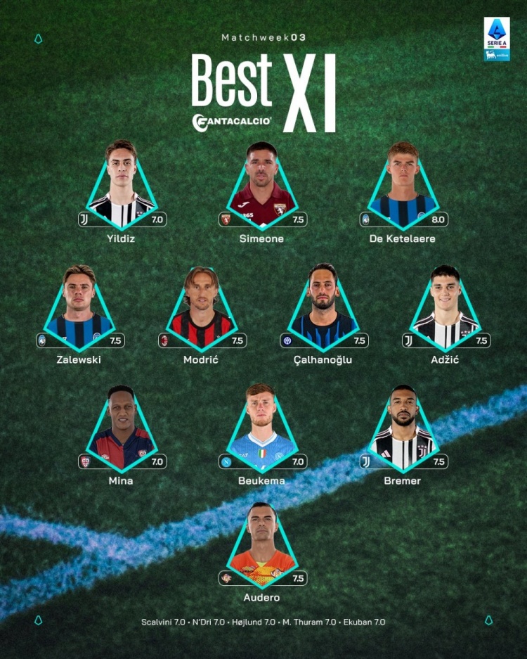 前鋒:伊爾迪茲(尤文圖斯)、小西蒙尼(都靈)、德凱特拉雷(亞特蘭大)
