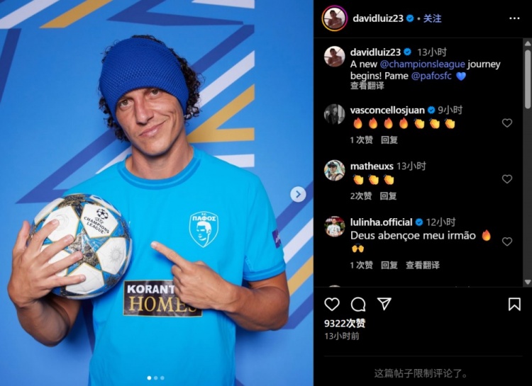 AEP帕福斯后衛大衛-路易斯更新社媒,曬歐冠定妝照,并寫(xiě)道:新的歐冠旅程開(kāi)啟!讓我們出發(fā),帕福斯??