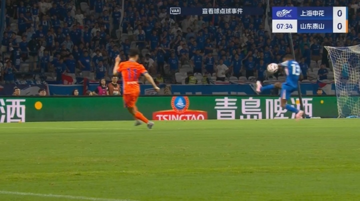 中超第24輪,上海申花主場(chǎng)對陣山東泰山。比賽第6分鐘,泰山球員投訴馬納法防守時(shí)手球,VAR檢查后確認沒(méi)有犯規,裁判示意比賽繼續。記者牛志明賽后發(fā)文,表示針對泰山隊和申花比賽的爭議判罰,泰山隊會(huì )申訴。