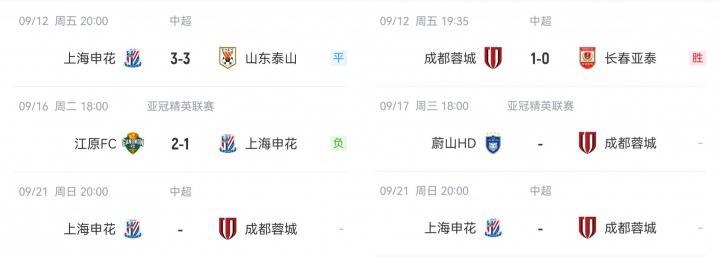9月21日20點(diǎn),申花主場(chǎng)迎戰蓉城。