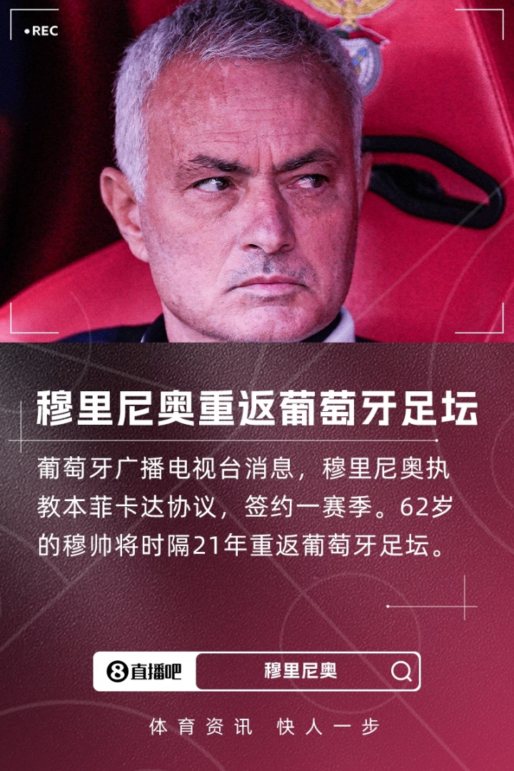 據悉,穆里尼奧將接替布魯諾-拉熱,出任本菲卡的新任主教練。62歲的穆帥將與本菲卡簽約一年,并時(shí)隔21年重回葡萄牙足壇執教。同時(shí)他也是時(shí)隔25年回歸本菲卡執教