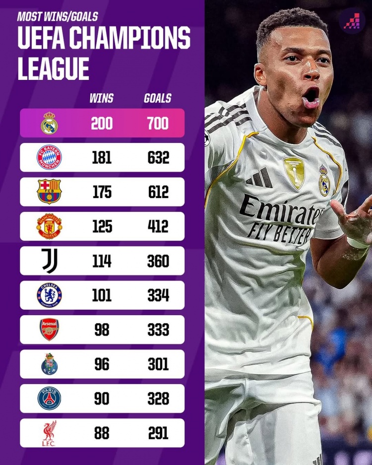 據Opta數據統計,這是皇馬在歐冠贏(yíng)下第200場(chǎng)勝利,比第2名拜仁多19場(chǎng),皇馬此役還打進(jìn)歐冠第700球,比第2名拜仁多68球。這是皇馬一個(gè)創(chuàng )造里程碑的夜晚!