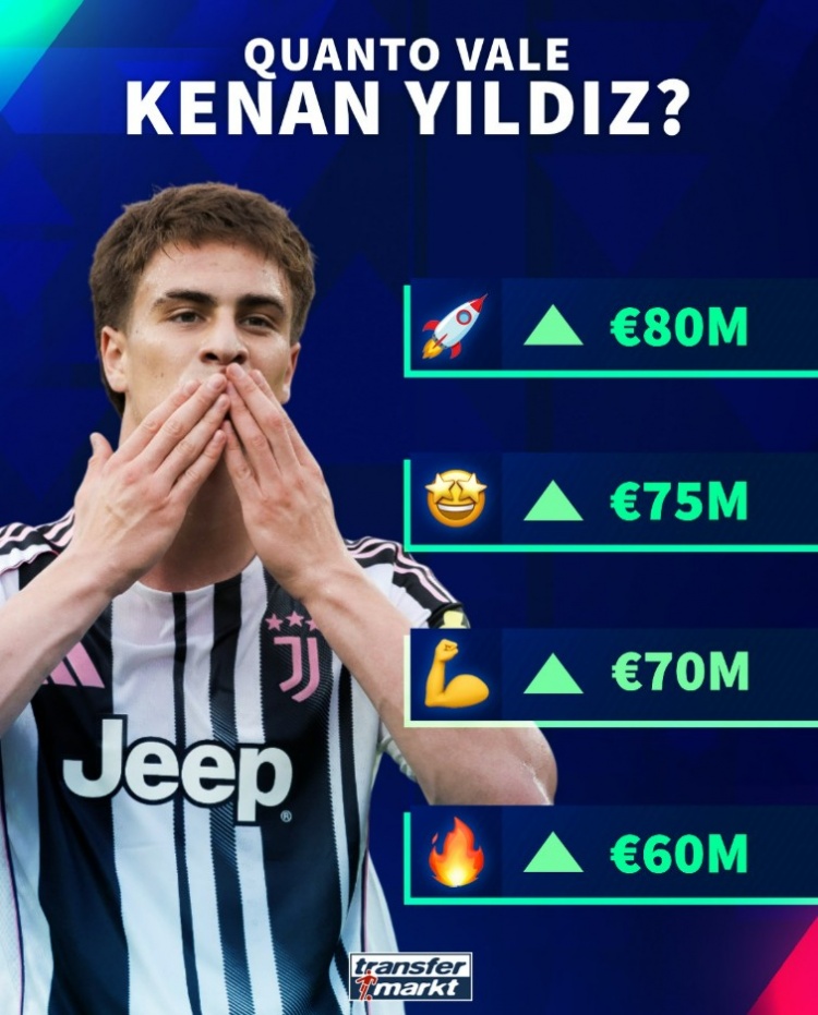 20歲的伊爾迪茲目前身價(jià)5000萬(wàn)歐,德轉給出的下次更新身價(jià)分別有6000萬(wàn)歐、7000萬(wàn)歐、7500萬(wàn)歐以及8000萬(wàn)歐。