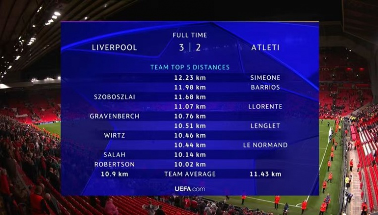 9月18日訊 歐冠聯(lián)賽階段第一輪比賽,利物浦主場(chǎng)3-2擊敗馬競,本場(chǎng)比賽朱利亞諾-西蒙尼跑動(dòng)12.23公里全場(chǎng)最多。