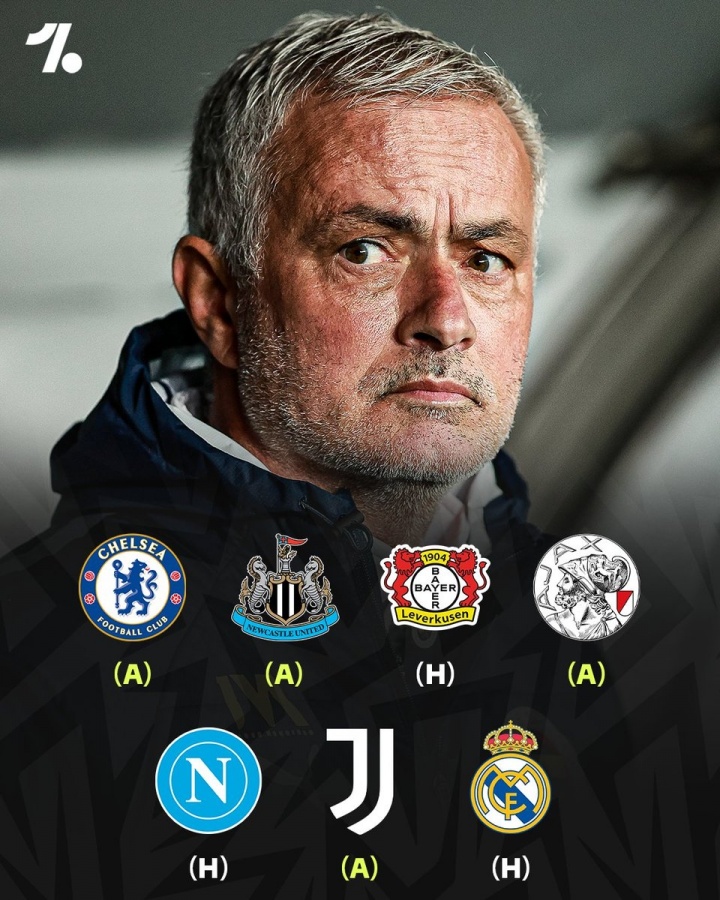 穆里尼奧執教本菲卡后,球隊在歐冠的對手也可謂劇情滿(mǎn)滿(mǎn),首先將回歸斯坦福橋對陣老東家切爾西,在聯(lián)賽階段最后兩輪,又將對陣他執教國米時(shí)的老對手尤文圖斯和另一個(gè)老東家皇家馬德里。