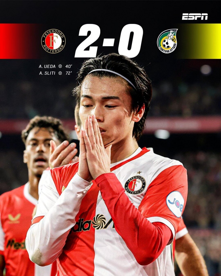 在荷甲第3輪補賽中,上田綺世再入一球助費耶諾德2-0福圖納錫塔德,而費耶諾德也以5戰全勝領(lǐng)跑積分榜。
