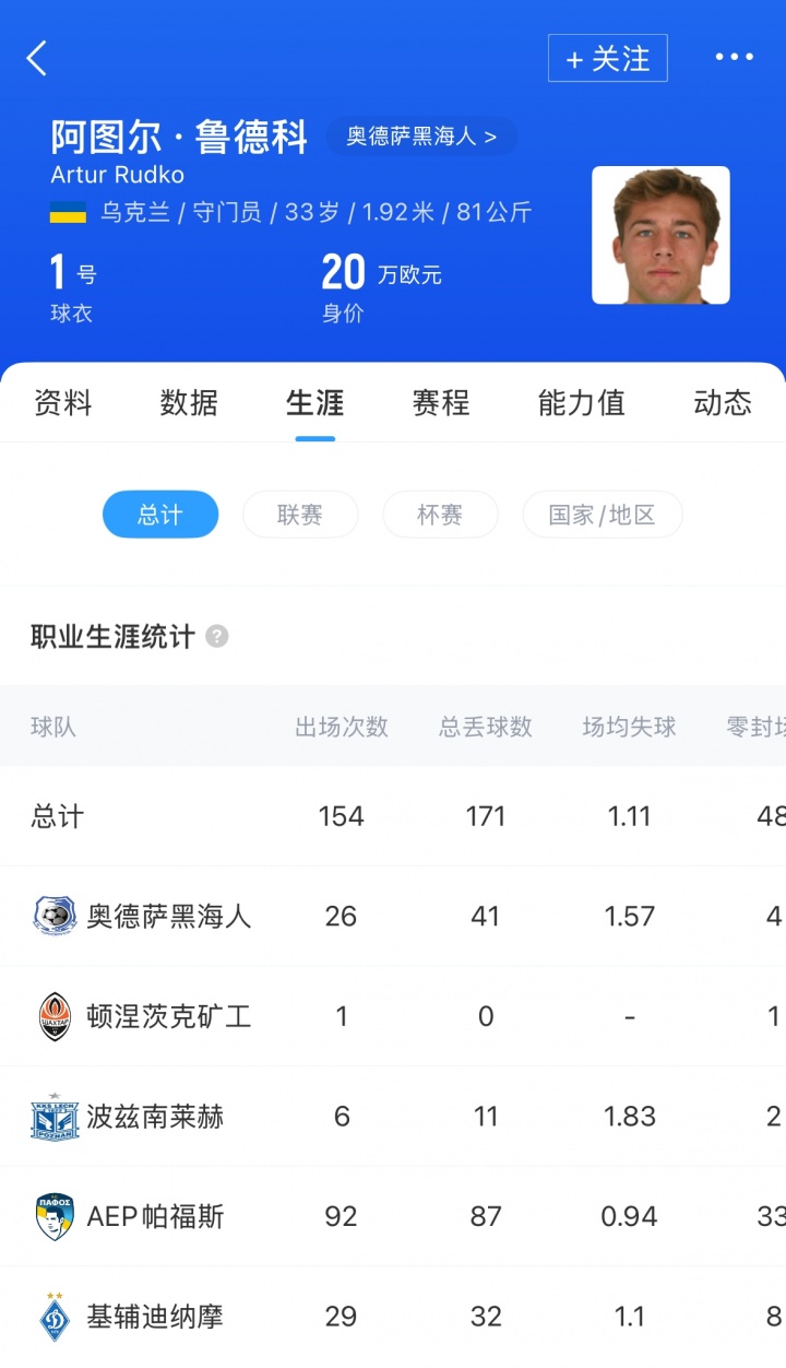 魯德科現年33歲,曾效力基輔迪那摩、帕福斯、頓涅茨克礦工等隊,他未入選過(guò)烏克蘭國家隊,代表烏克蘭U20、U21出過(guò)場(chǎng)。