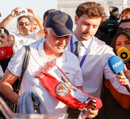 9月18日訊 據《記錄報》報道,在穆里尼奧飛抵葡萄牙蒂雷斯機場(chǎng)后,他將一位前來(lái)接機的球迷送給他的本菲卡圍巾帶走。