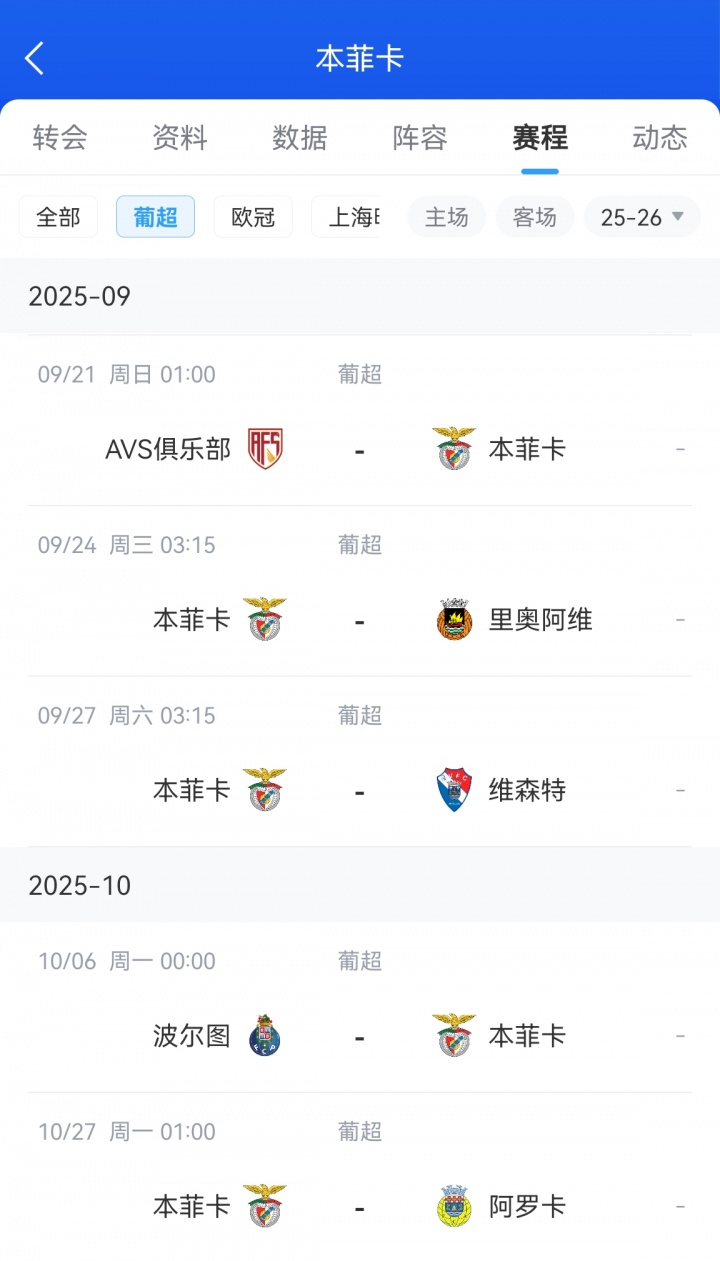 穆帥的本菲卡首戰是9月21日1點(diǎn),葡超客場(chǎng)挑戰AVS俱樂(lè )部,10月6日,他將帶隊客場(chǎng)挑戰老東家波爾圖。